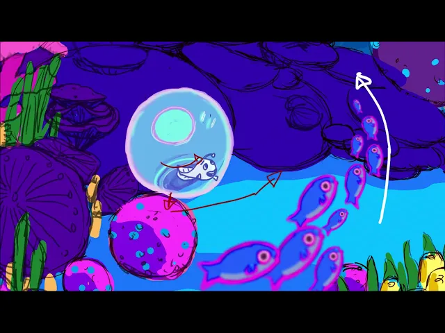 Going Home is a short animated film blending 2D and 3D to tell the story of a lost alien fish searching for home. I contributed to every stage of the project, from concept development to final production.
